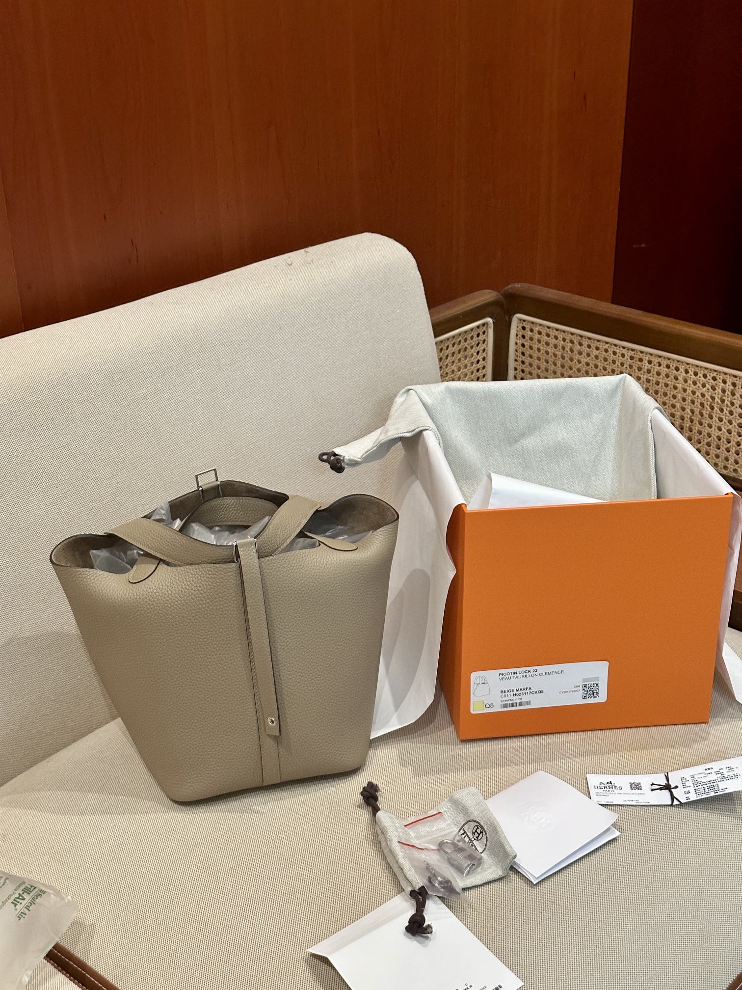 Minimal and functional, the Artisan Grade Hermès Picotin is beloved for its bucket shape and unlined interior. This version captures the simplicity and leather quality that have made Hermès craftsmanship legendary, emphasizing the natural beauty of the hide and the precision of the artisan’s work.